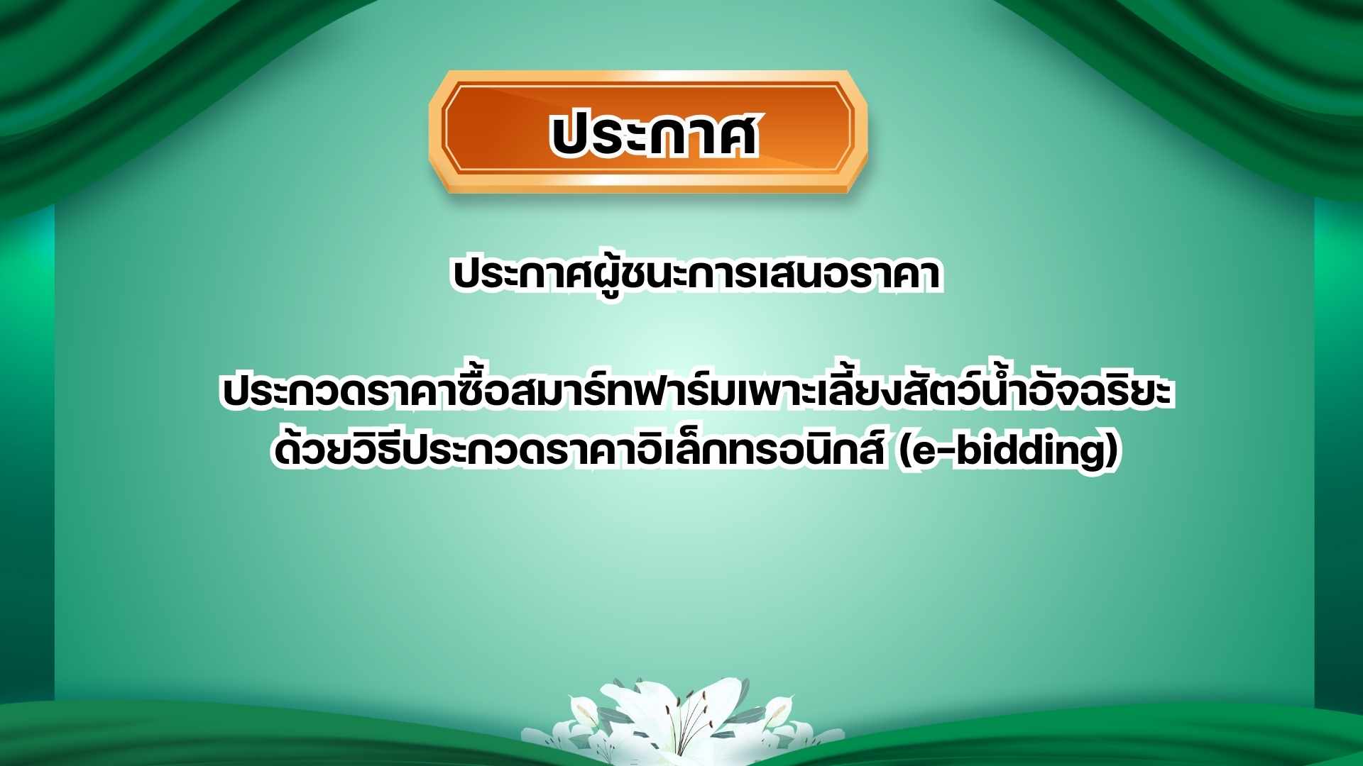ประกาศผู้ชนะการเสนอราคา ประกวดราคาซื้อสมาร์ทฟาร์มเพาะเลี้ยงสัตว์น้ำอัจฉริยะ ด้วยวิธีประกวดราคาอิเล็กทรอนิกส์ (e-bidding)